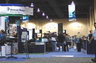 If you are like 90% of the other people that see this photo, the only thing you can clearly see is the overhead TFS sign for the “Pentair Water” booth (which is on a completely different aisle!) That is what makes a suspended TFS so valuable. Face it, regardless of whether your exhibit is for a tradeshow, retail, festival or museum application, the floor is a crowded place. Fact: The first 6 to 7 feet from the floor up is covered in human bodies. Anything you display here will be visible from a very limited area.