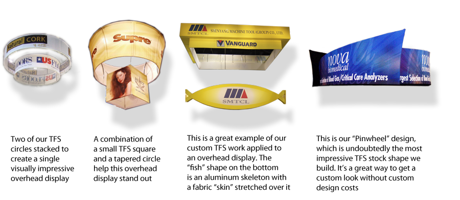 Our company has built hundreds… maybe even a few thousand of these structures over the years. We absolutely believe placing a suspended tension fabric structure overhead is the single best way to make sure your exhibit gets peoples attention from across a crowded room. Want us to prove it? Take a look at the first photo on the right.